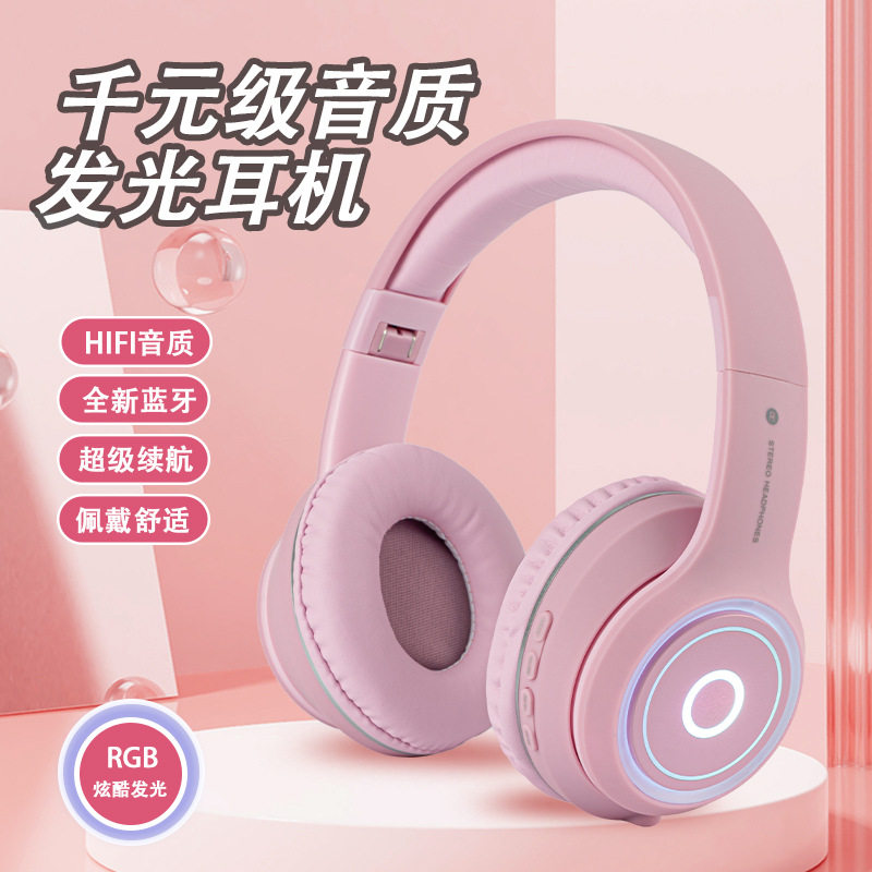 新款头戴式蓝牙耳机私模甜美带呼吸灯无线耳机高音质可插卡耳机