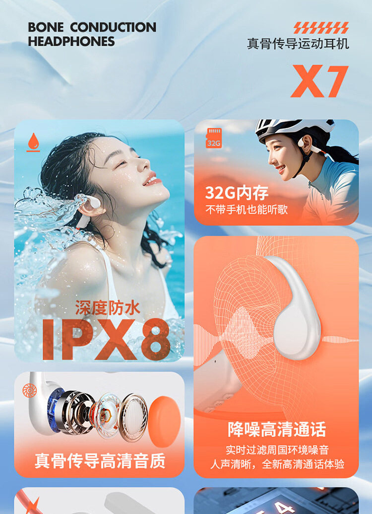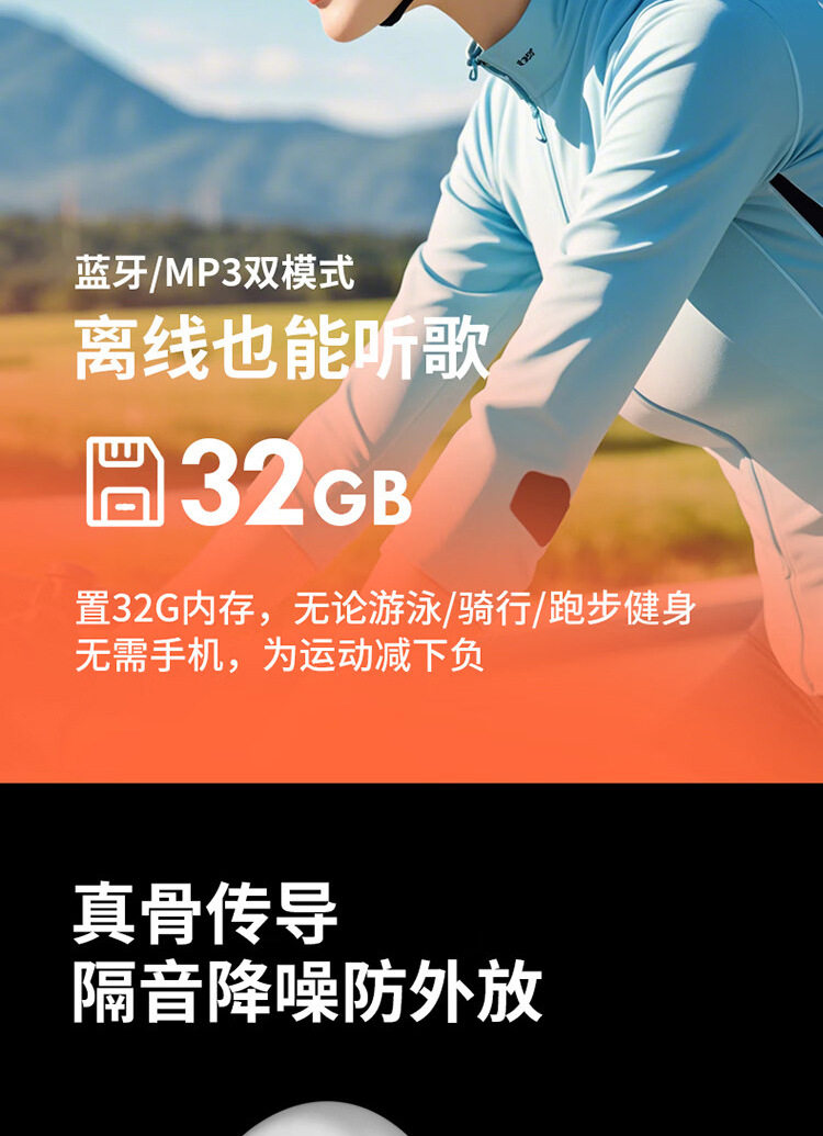 跨境游泳耳机听歌带32g内存长续航骨传导无线蓝牙耳机