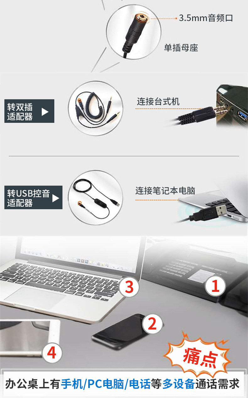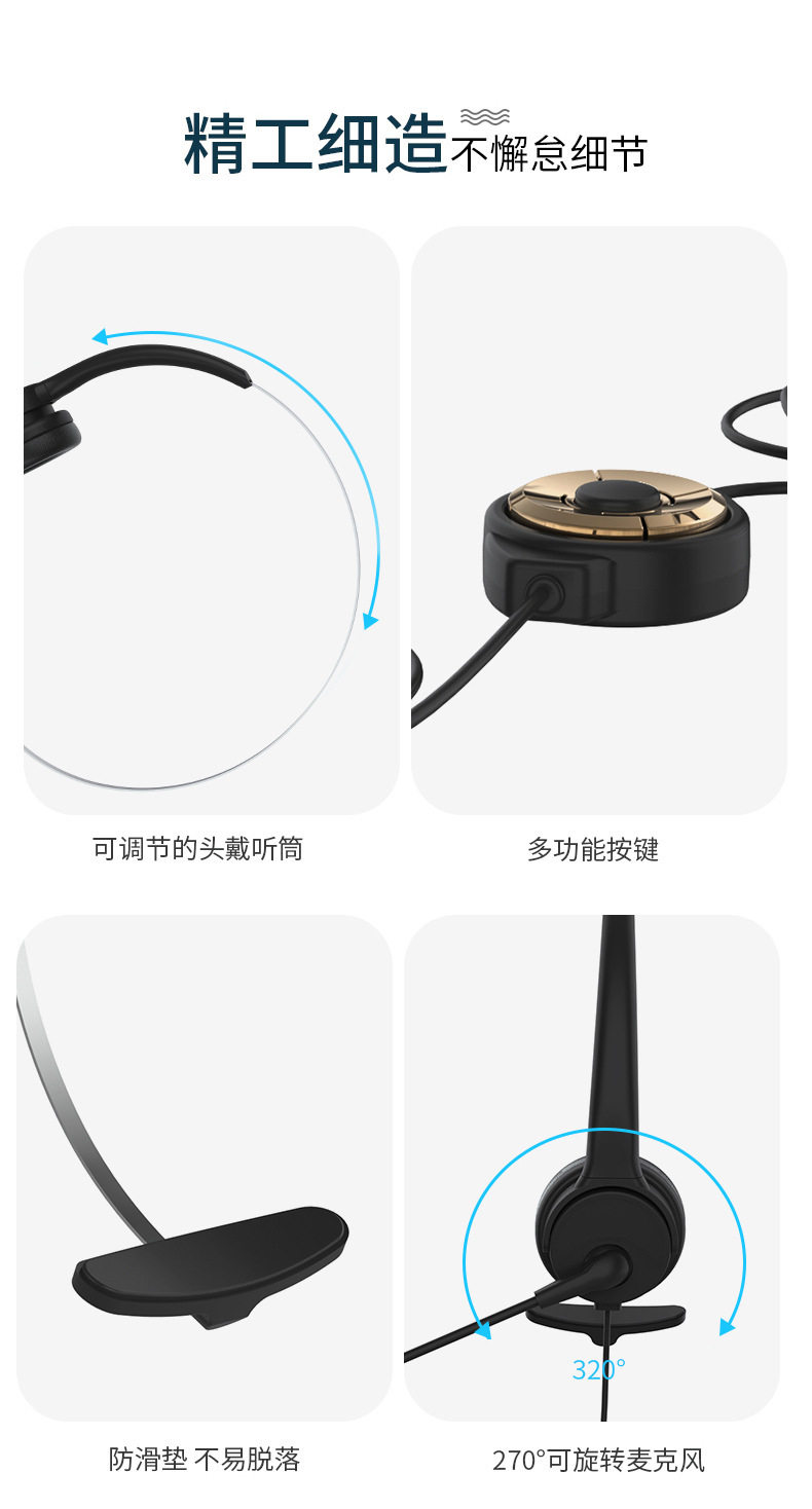 有线话务耳机话务员客服耳机带降噪呼叫中心台式电脑笔记本手机