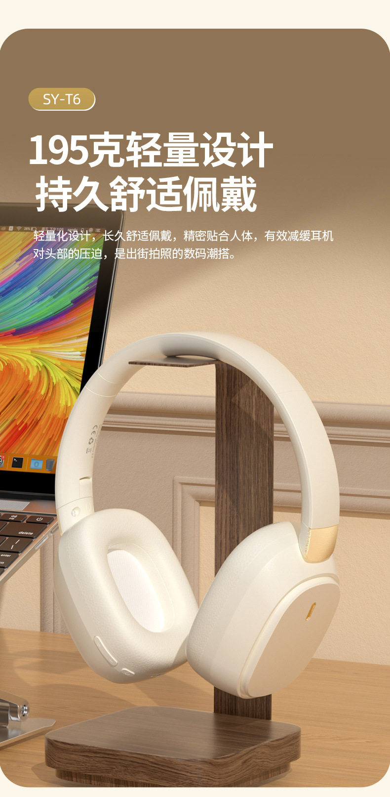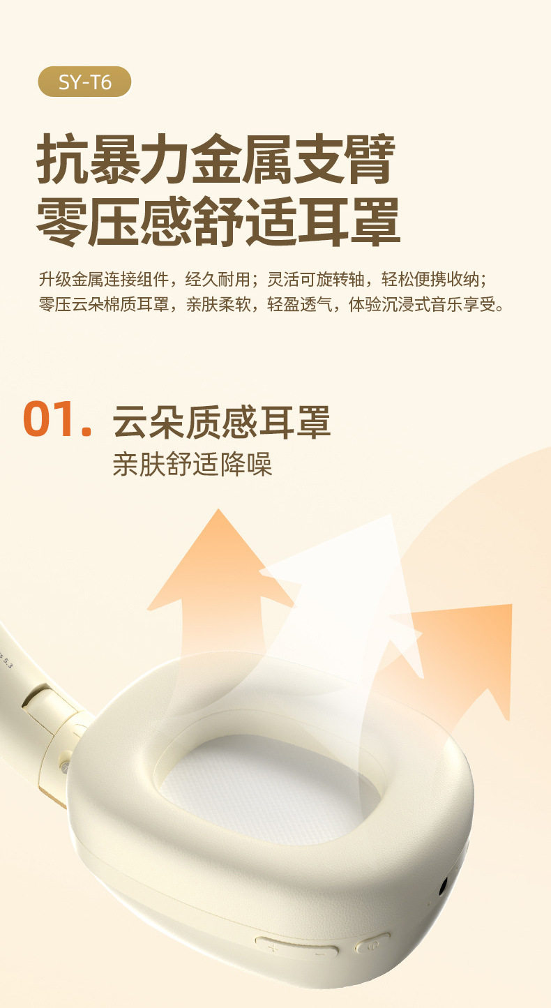 全包耳空气感蛋白耳罩、升级金属支臂、可旋转、可折叠