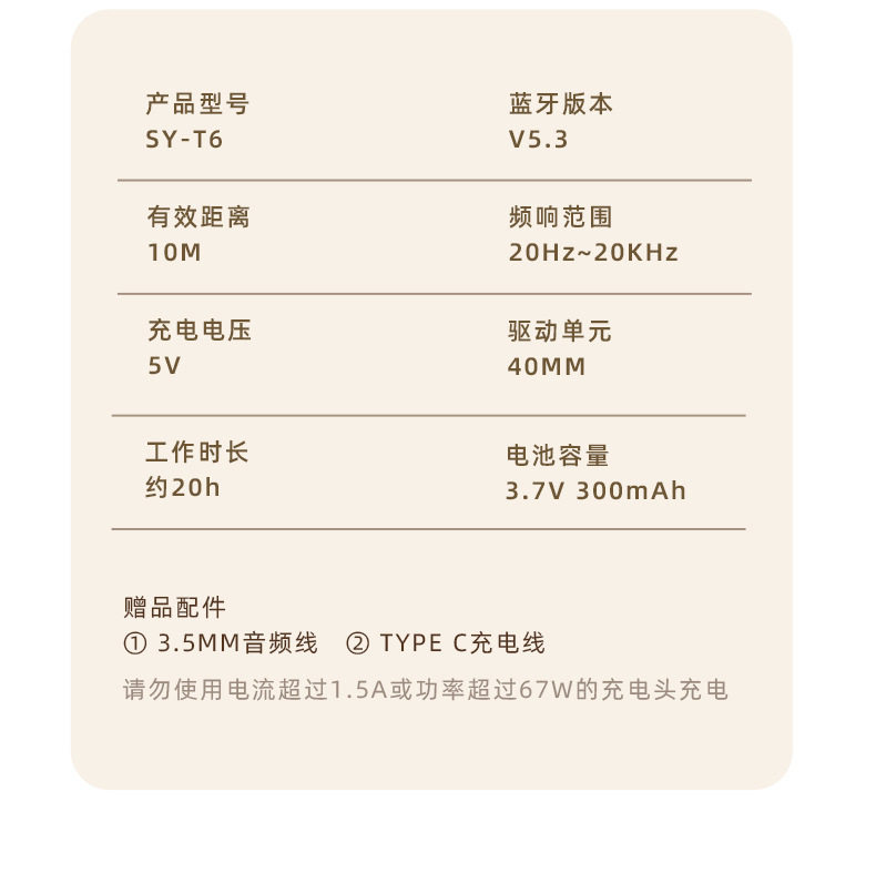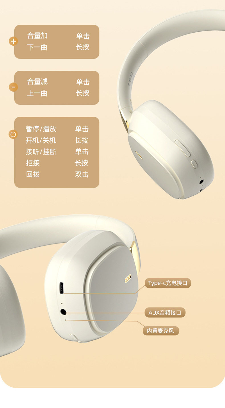 内含:Type-C充电线,AUX音频线,说明书,吸塑托盘