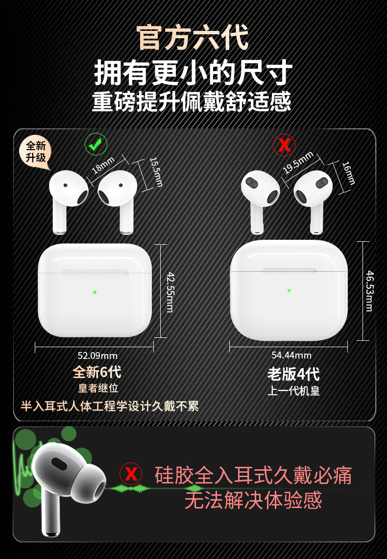 跨境爆款六代入耳式蓝牙耳机批发厂家批发六代入耳式蓝牙