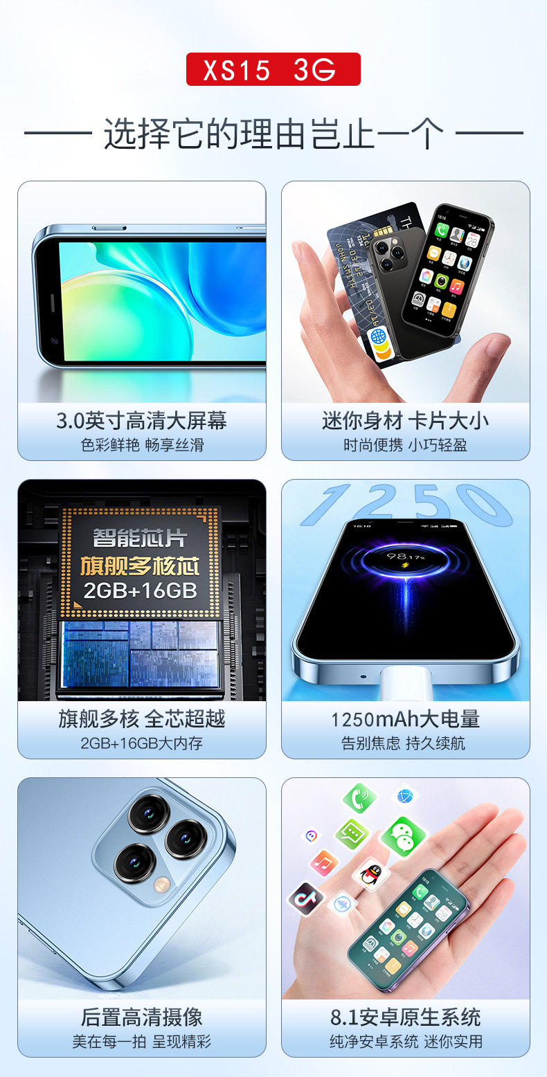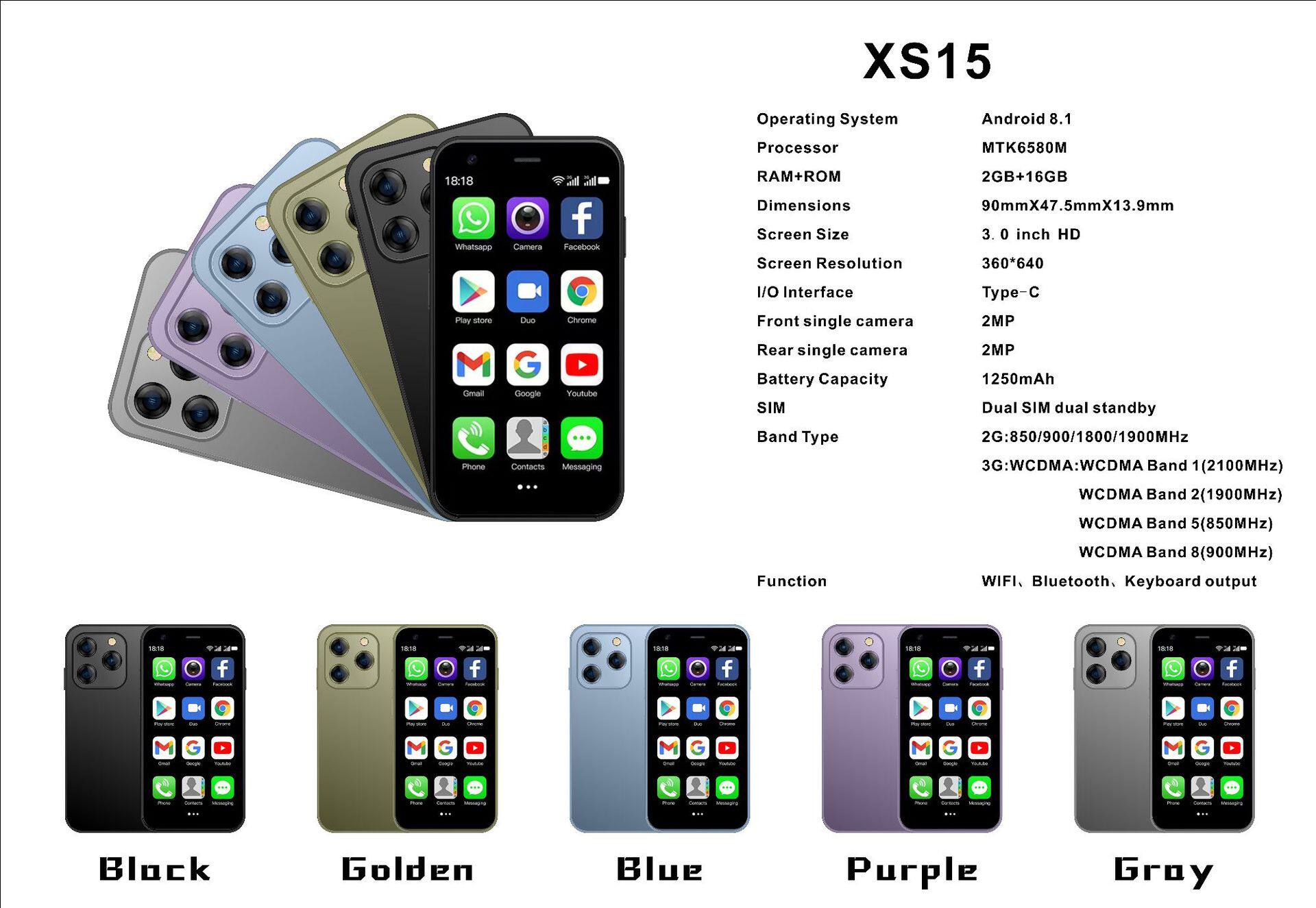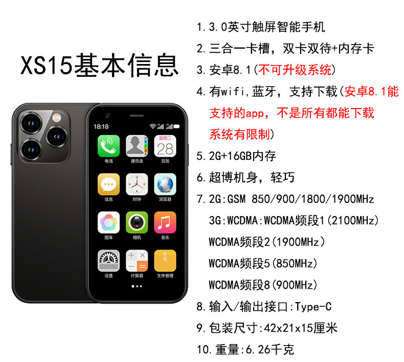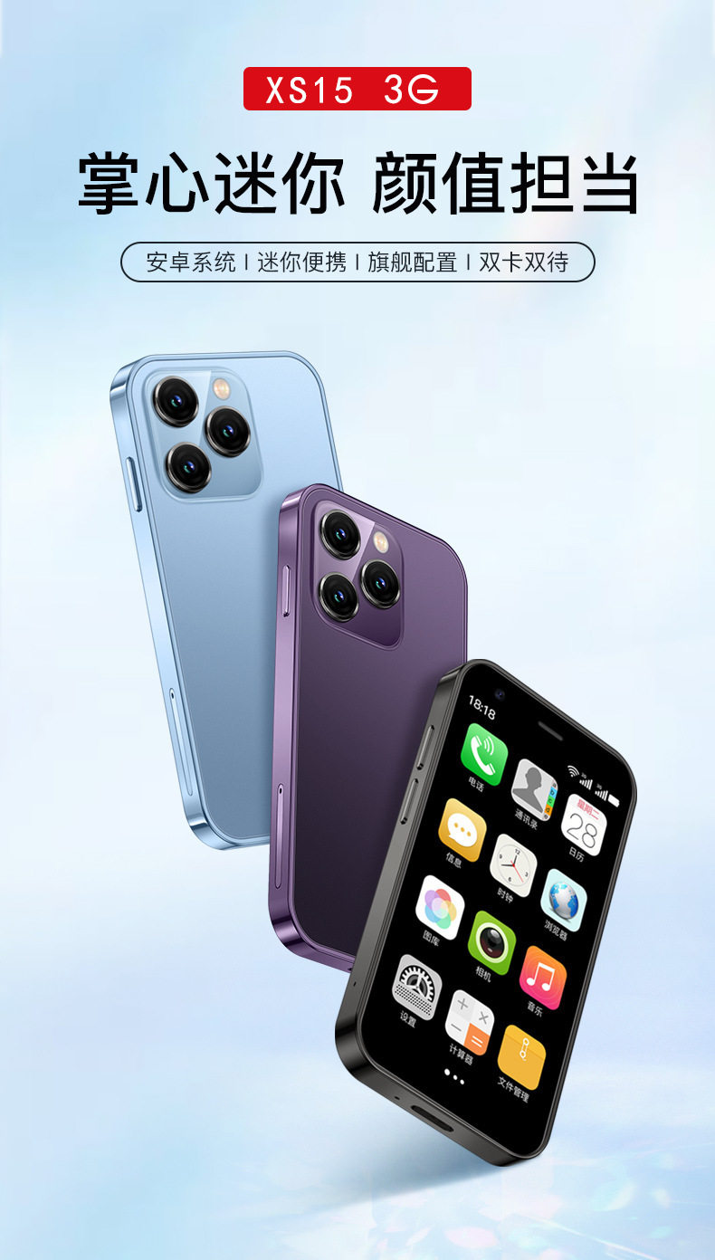 跨境手机XS15新款智能手机双卡迷你机2+16直板触屏安卓3G备用手机