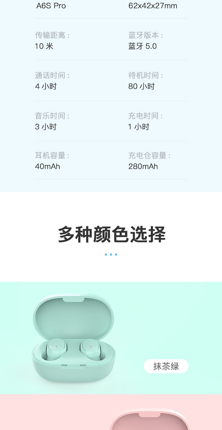 跨境专供A6S E6S E7S蓝牙耳机迷你运动降噪入耳式立体声无线耳机