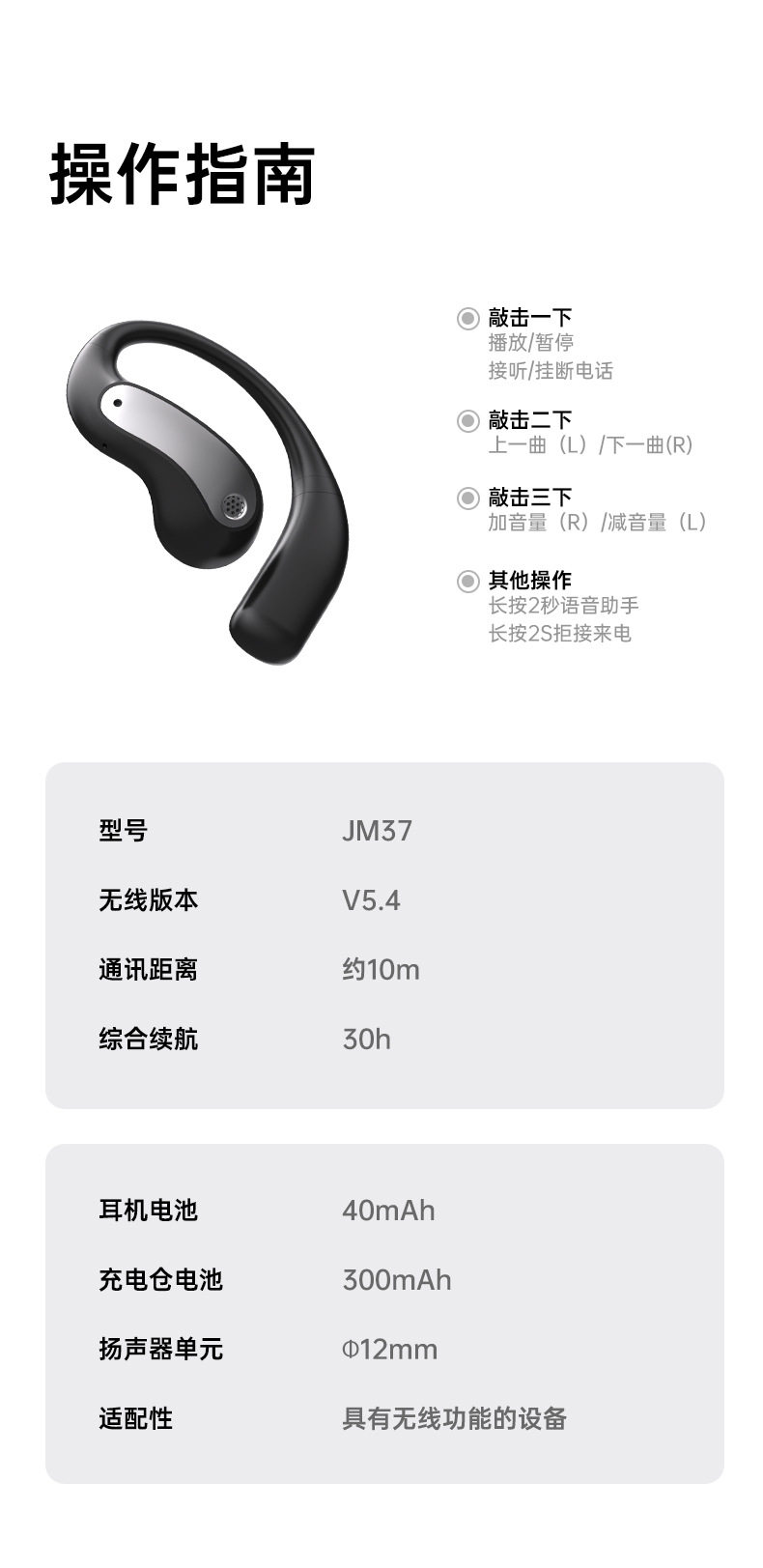 产品型号:JM37 OWS蓝牙耳机